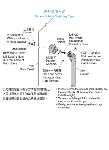 Two ways for install: 1. Inner stationary type. 2. Outside stationary type.