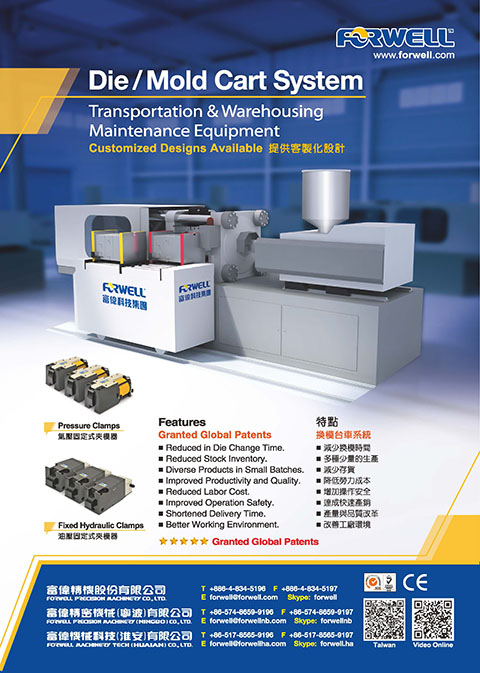 All Forwell Quick Mold Change Systems use high quality Die Clamps for very secure clamping, quick mold changing and safer operations. These clamps can fasten Molds whether they are changed vertically or horizontally.