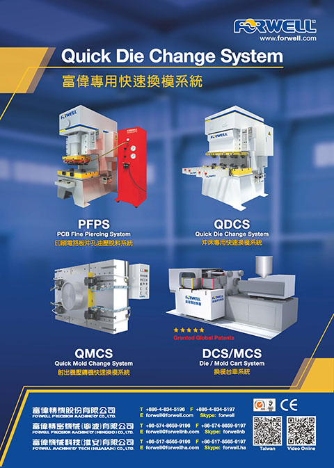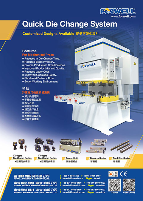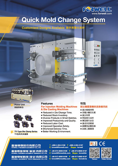 All Forwell Quick Mold Change Systems use high quality Die Clamps for very secure clamping, quick mold changing and safer operations. These clamps can fasten Molds whether they are changed vertically or horizontally.