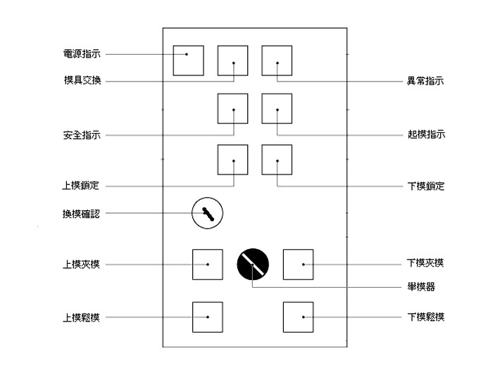 The easy to use control panel offers a simple interface to monitor and control operations of the Quick Mold Change System. The upper half of the screen displays automatic functions while the lower half can be used for operator-controlled functions. This makes this machine easy to control yet still have the functionality needed of a Quick Mold Change System.